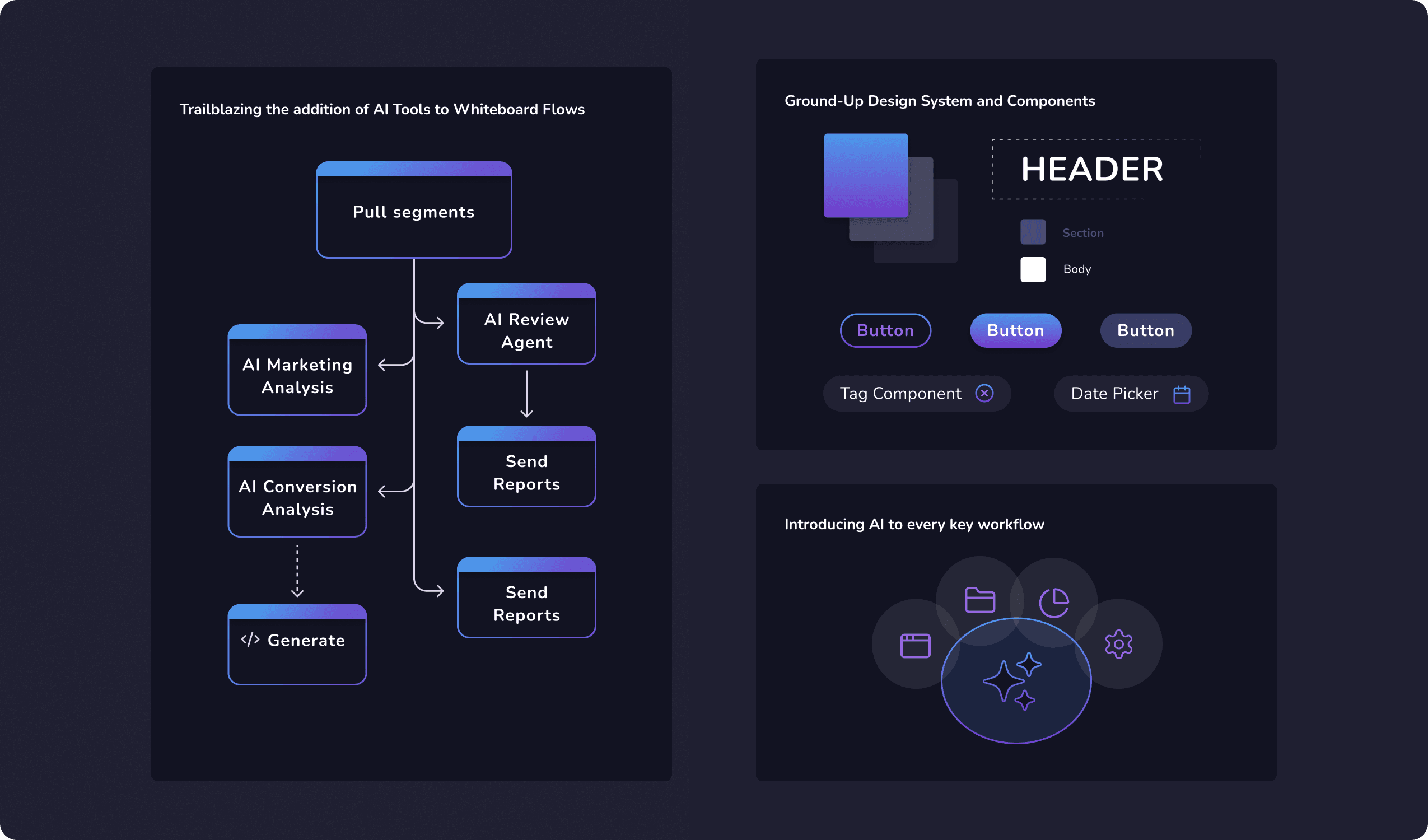 This was a groundbreaking project launched before the mainstream AI boom—an early AI-powered tool that analyzed user behavior and financial data to identify trends and predict outcomes. Our goal was to surface advanced analytical capabilities for non-technical users, allowing anyone on the team to write and iterate on database queries without prior training.