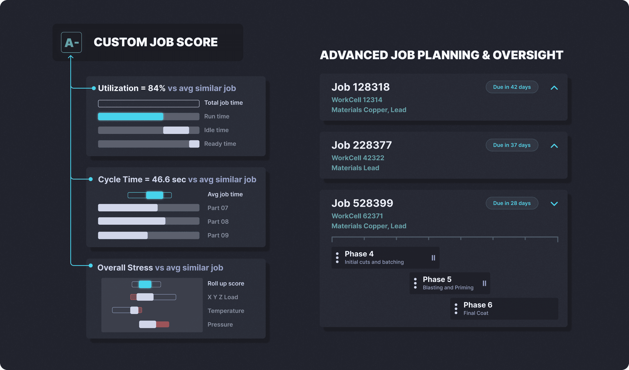 I designed a customizable scoring system to identify machines and methods that require attention based job timeline and costs. This system integrated multiple performance metrics and gave easy paths to drill in to detailed machine and job data. We build several custom data visualizations to detect anomalies and make predictions.